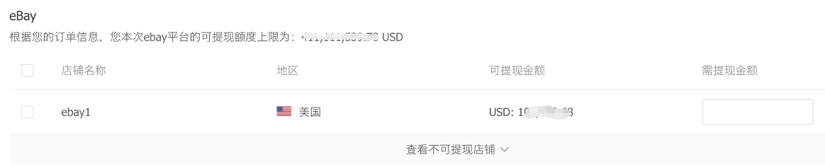 点击【立即提现】,根据需求,选择需要提现的店铺,输入需提现金额,点击提现即可完成提现;